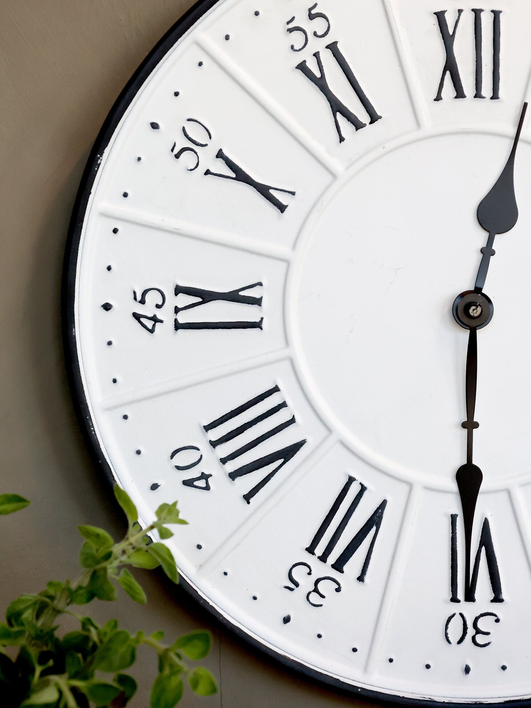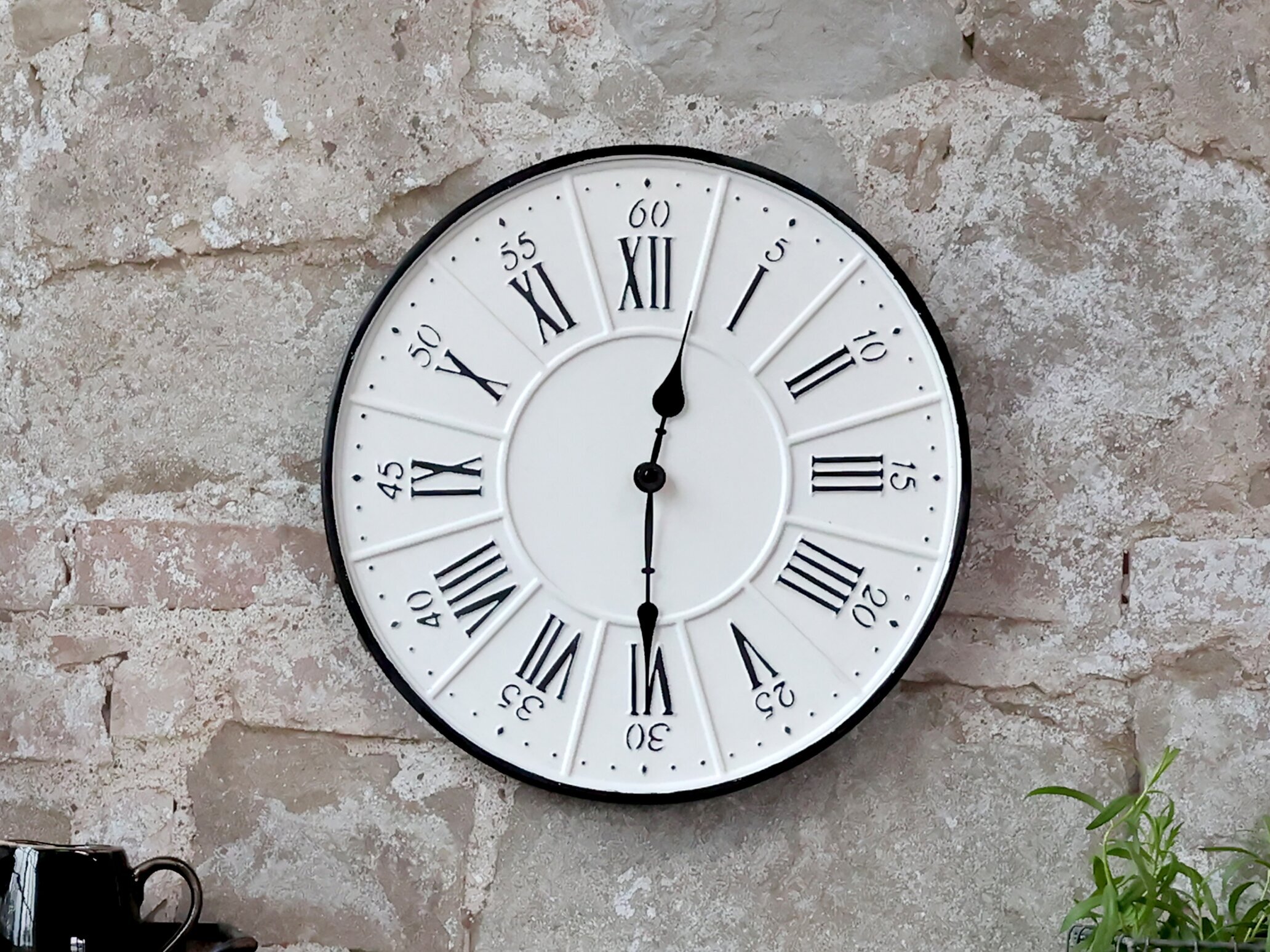 Vacker väggklocka med en touch av vintage där designen efterliknar den franska lantstilen. Klockans siffror & romerska nummer är präglade i urskivan. Klockan som tillverkats för hand blir en vacker detalj i både kök som vardagsrum.