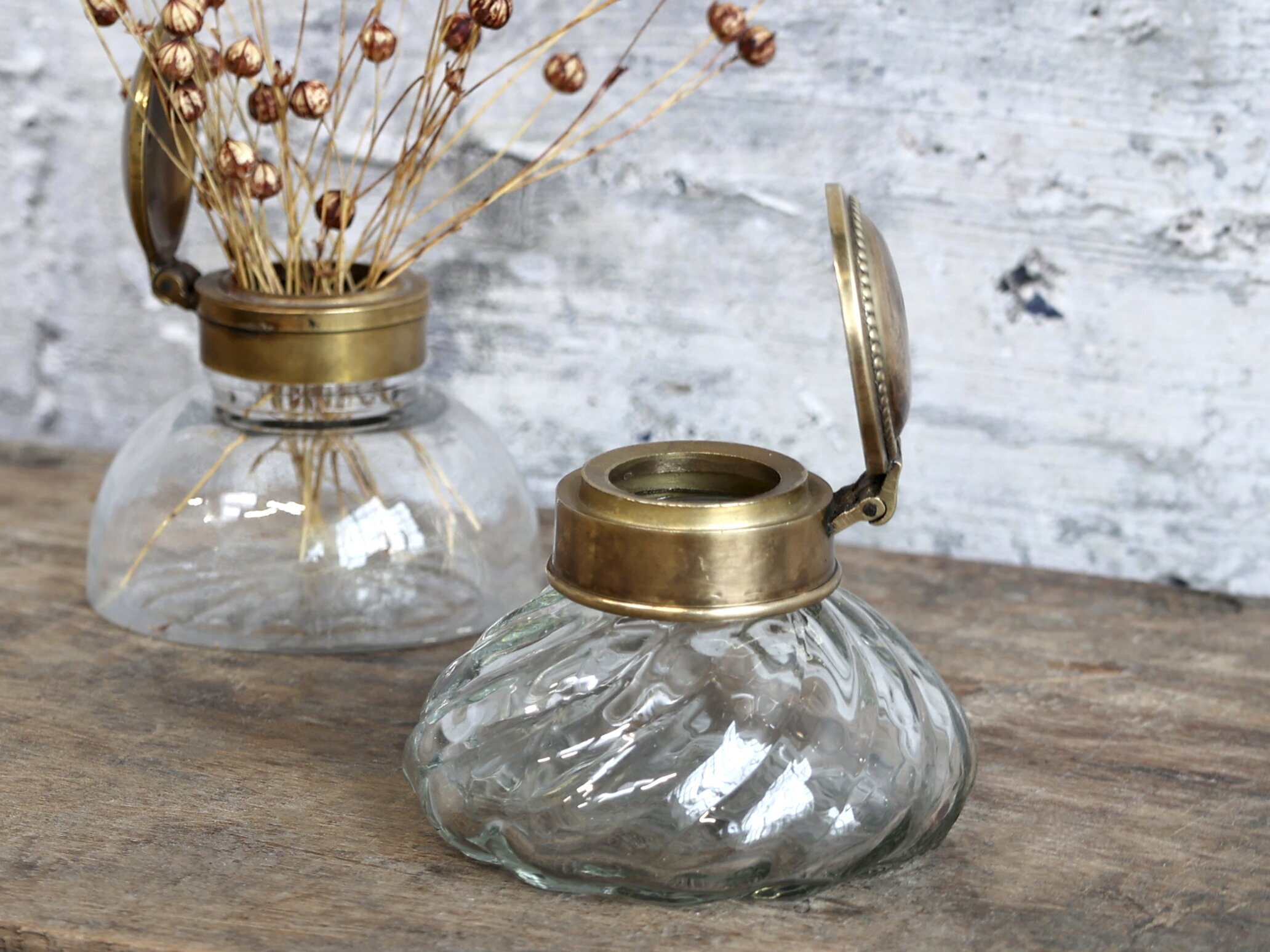 Vacker liten glasvas med mässingslock, fin att dekorera med torkade blommor & kvistar. Från Chic Antique.