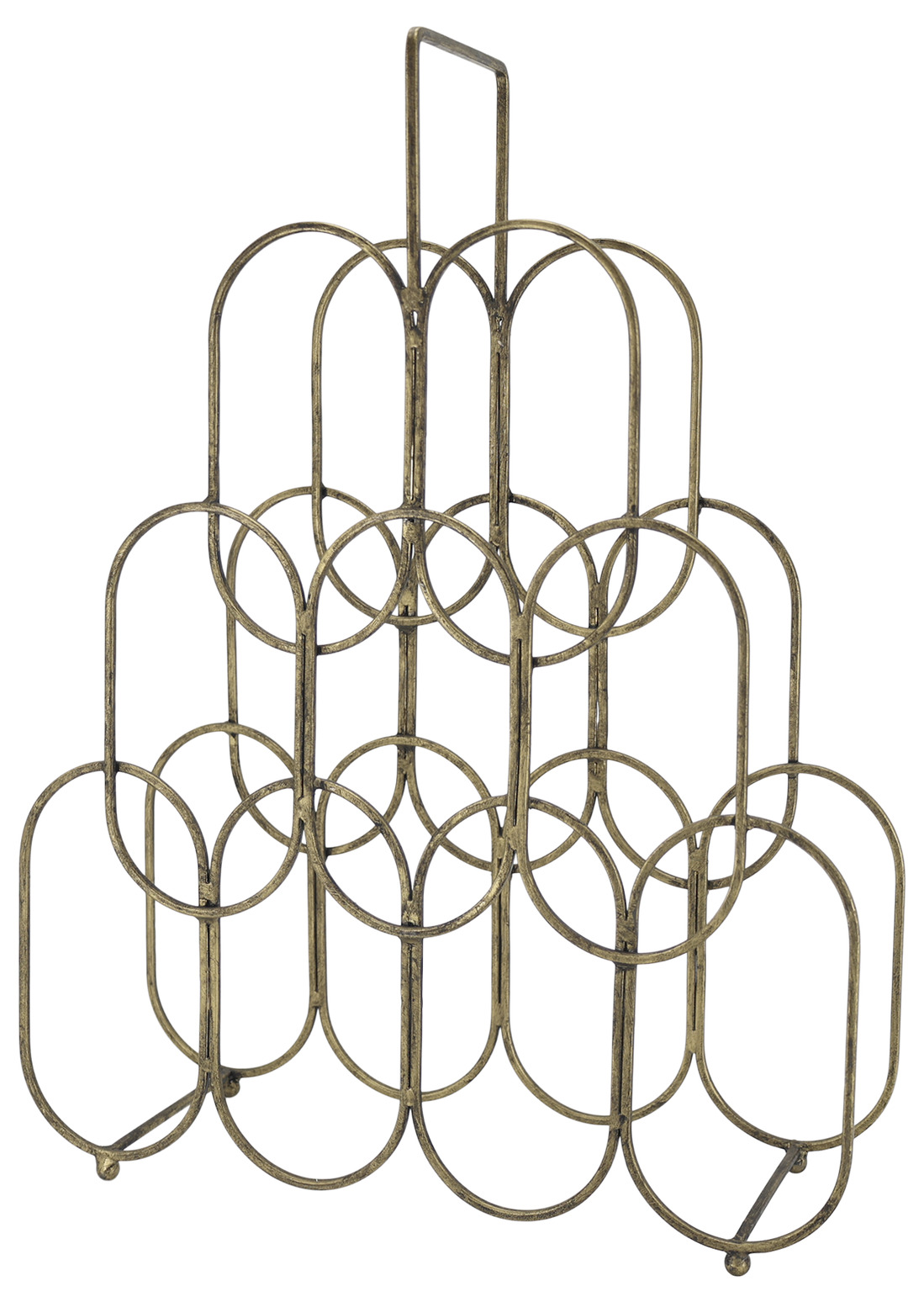 Ge din vinförvaring ett stilfullt lyft med detta eleganta vinställ för 9 flaskor. Den dekorativa metallkonstruktionen med mjukt rundade former och grafiskt mönster ger ett exklusivt och tidlöst uttryck.