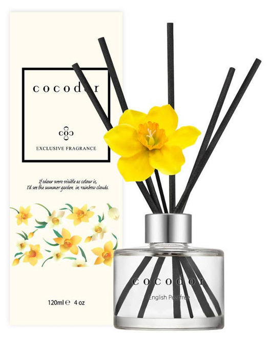 Cocodors doftdiffusor med "English Pear" är en fräsch och fruktig doft som fyller ditt hem med elegans och livfullhet. Den strålande gula blomman tillsammans med de svarta fiberpinnarna skapar en stilren design som passar alla miljöer. Den här diffusorn kombinerar praktisk funktion med estetisk charm och sprider en uppfriskande atmosfär, perfekt för att skapa en välkomnande känsla i varje rum.