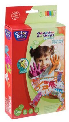 Bilden visar ett färgglatt och inbjudande fingerfärgset från Köpstaden.se, en butik känd för sitt breda utbud av produkter för hem och hobby. Förpackningen tillhör varumärket Color & Co och innehåller fem tuber fingerfärg à 80 ml, vilket tydligt framgår av den tryckta texten på kartongens framsida. Denna bild är idealisk för föräldrar som letar efter kreativa aktiviteter för sina barn.