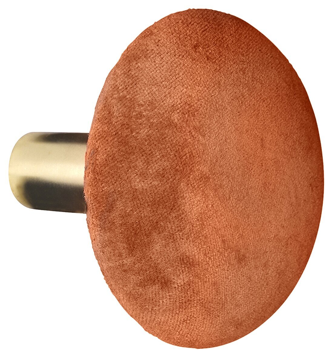 Bilden visar en rund knopp som går under namnet Knopp Sammet Spice L. Denna produkt från det välkända varumärket Cozy Living finns tillgänglig hos Köpstaden.se, en butik som erbjuder mångsidiga produkter för vardagens alla behov. Knoppen har en generös rund form och en mjuk yta av sammetstextur, vilket ger en tålig men behaglig finish. Den varma, kryddiga tonen i färgen, som påminner om dämpad terrakotta, tillför en subtil men tilltalande detalj till vilket interiörprojekt som helst.