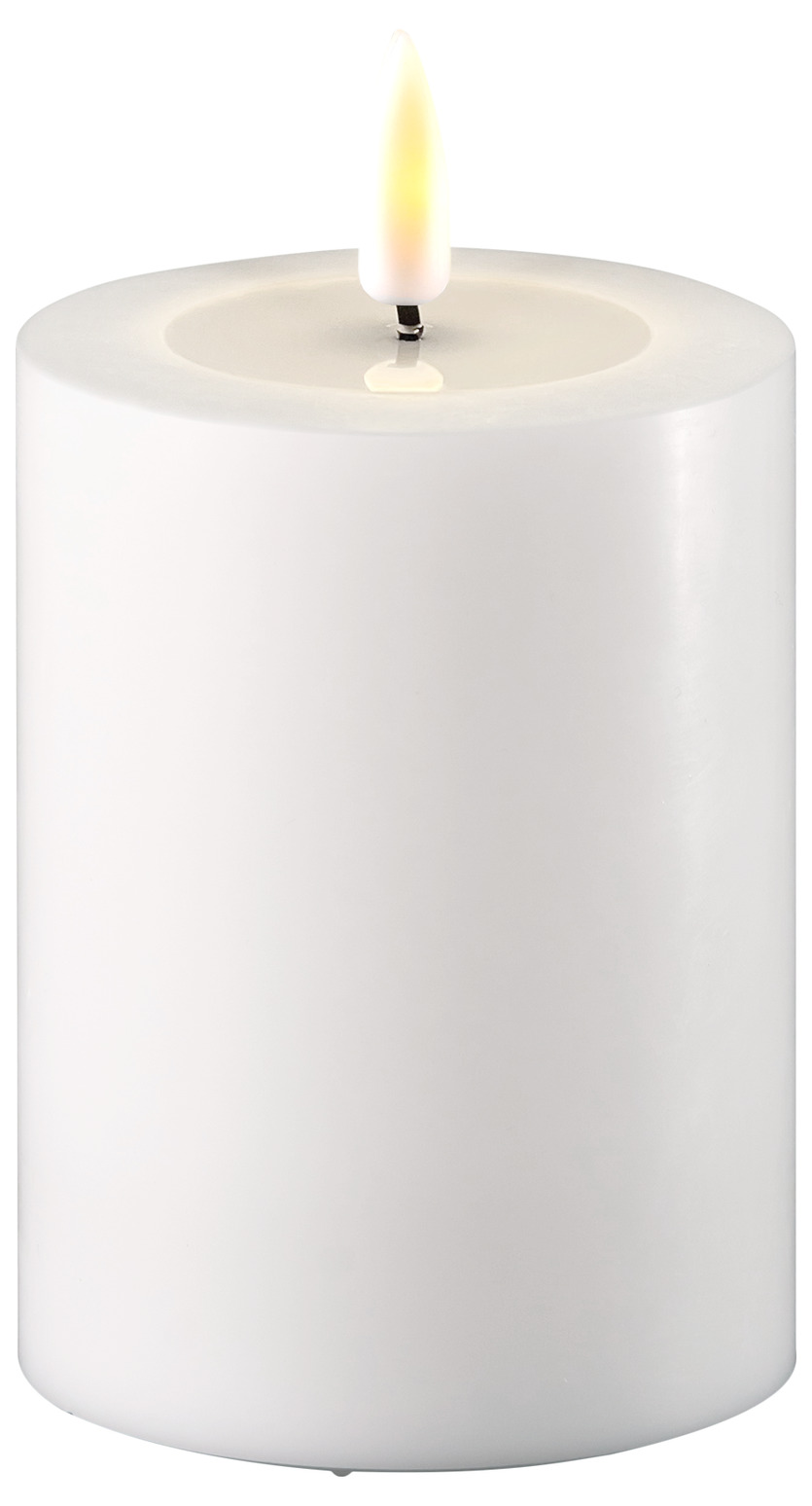 Dekorativt LED-ljus för inomhusbruk i en fin vit nyans. LED-ljuset har en patenterad 3D Real Flame låga som ger ett verklighetstroget utseende. Ljusen är tillverkade av 100% stearin med en ring ovanpå ljuset som efterliknar flytande vax där lågan reflekteras.