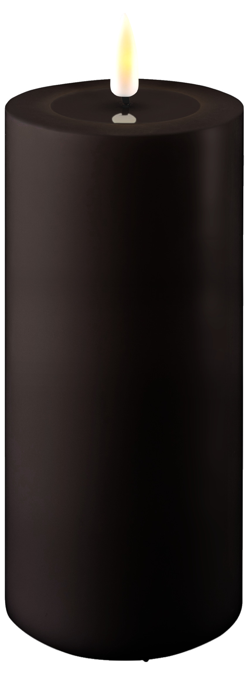 Ljusets yta är slät och cylindrisk, vilket ger ett modernt och tidlöst intryck. Den matta svarta färgen bidrar till dess subtila utseende, vilket gör att det enkelt kan passa in i olika miljöer, både utomhus och inomhus. Ljusets proportioner gör det lämpligt för användning som ett fristående ljus eller samlat i grupp för en mer dramatisk effekt.