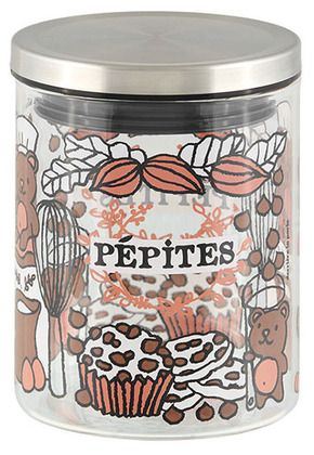 Förvara dina chokladbitar eller bakchoklad med stil! Den här söta glasburken med metallock och lekfulla illustrationer för tankarna till bakglädje och varma köksminnen. Perfekt för dig som vill ha ordning i skafferiet – och ett leende varje gång du öppnar locket. Texten “Pépites” (chokladbitar) säger allt – det här är burken som väntar på ditt bästa snacks!