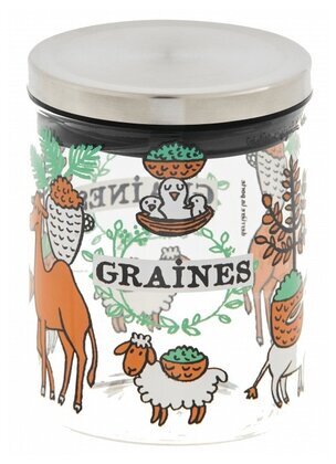Den här söta glasburken gör förvaringen både praktisk och glad. Perfekt för allt från solrosfrön till mandlar och små snacks. Med sitt lekfulla djurmotiv och tätslutande lock passar den lika bra i köket som på skrivbordet. En burk som förgyller både hyllan och vardagen.