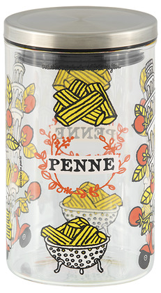 Fantastiskt fin glasburk med färgglatt mönster till förvaring av penne. Glasburken har ett lufttätt lock vilket gör att pastan håller sig torr & fräsch samtidigt som man har en bra överblick när det är dags att fylla på.