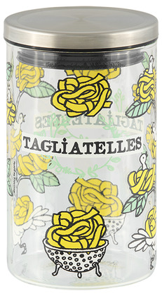 Fantastiskt fin glasburk med färgglatt mönster till förvaring av tagliatelle. Glasburken har ett lufttätt lock vilket gör att pastan håller sig torr & fräsch samtidigt som man har en bra överblick när det är dags att fylla på.