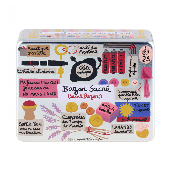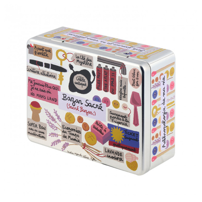 En lekfull och dekorativ plåtburk perfekt för förvaring av småsaker. Det färgstarka motivet med olika symboler och små detaljer ger burken ett charmigt och personligt uttryck.