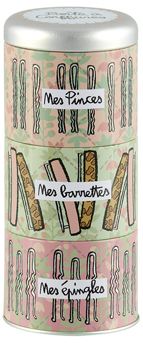 Plåtburk hårspännen 3-delad & stapelbar, en dekorativ & praktisk plåtburk som gärna får stå framme i badrummet. Läs mer