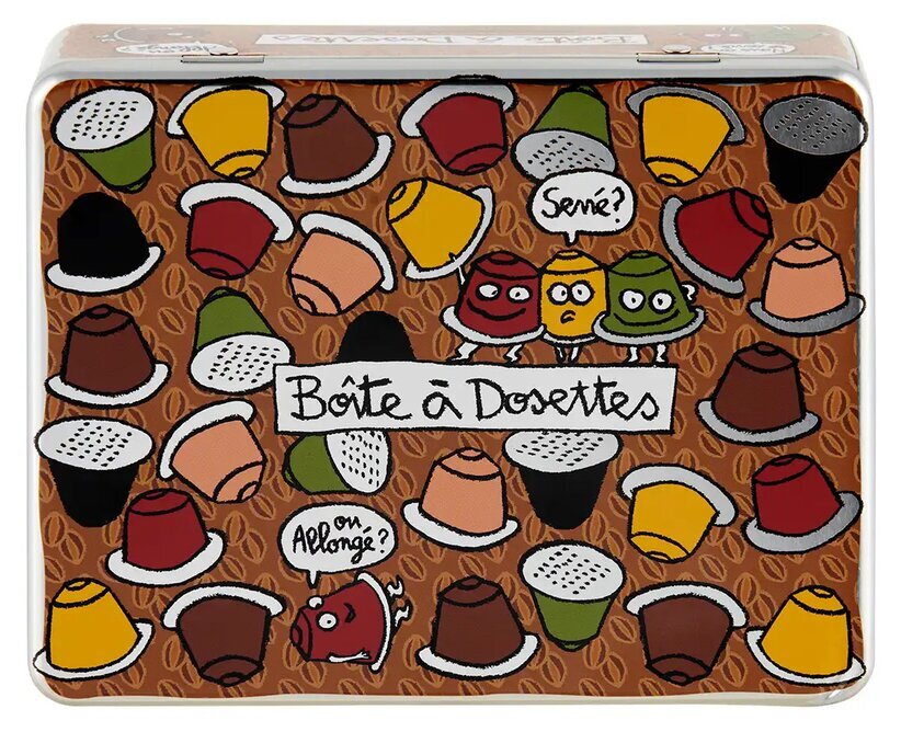 Förvara dina kaffe, the eller chokladkapslar i denna fina plåtburk från det franska märket Derrière La Porte