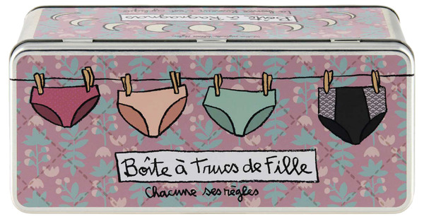 Dekorativ & färgglad plåtburk med lekfullt motiv till förvaring av prylar, från Derrière La Porte. Bra förvaring till saker som man inte vill ha liggandes framme men ändå nära till hands.