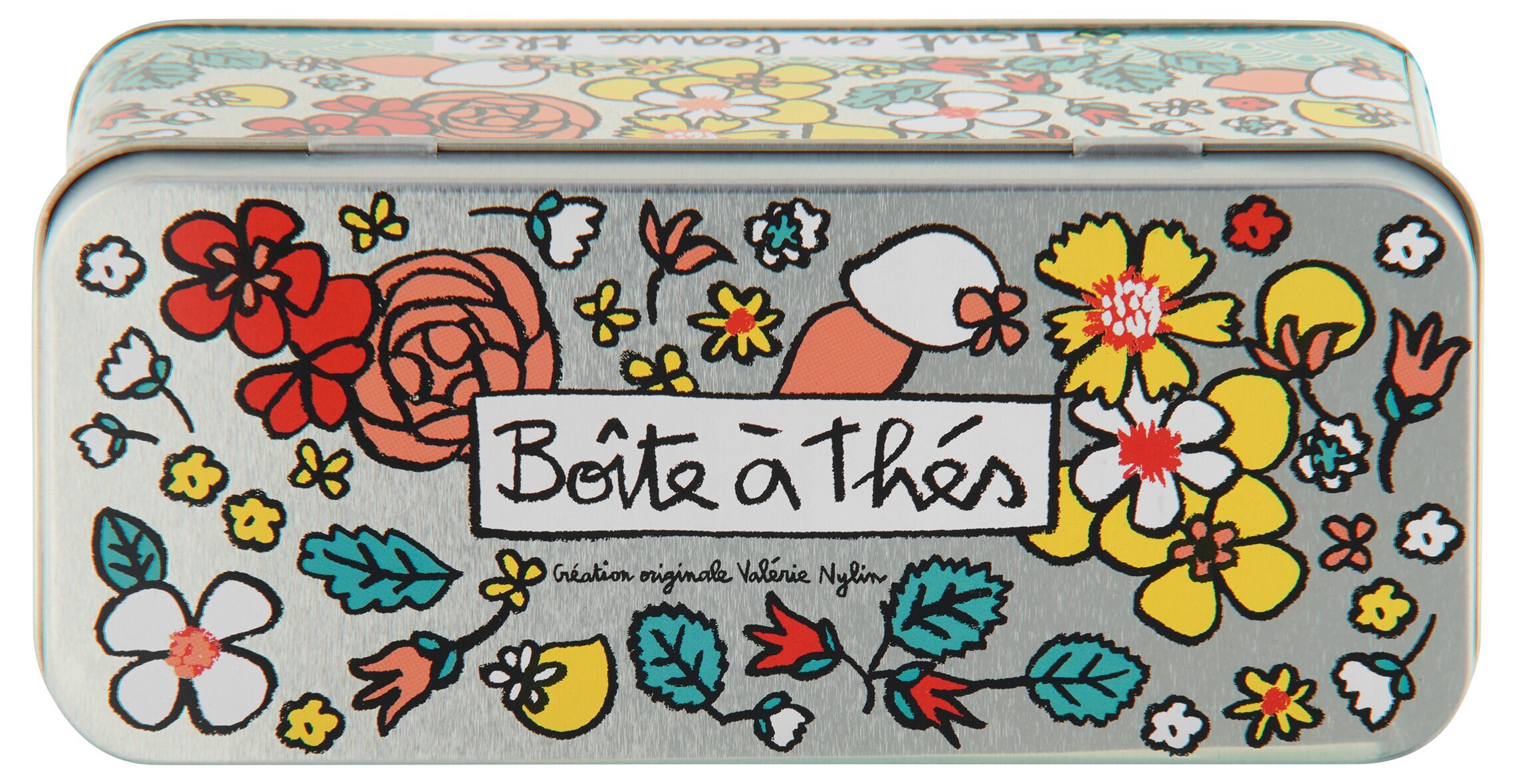 Förvara dina tepåsar i denna plåtburk som man med fördel kan låta ha ståendes framme i köket. Den tar minimalt med plats & man kan ha sina tepåsar både ståendes eller liggande. Går även bra att använda löste i burken. Plåtburken kommer från det franska märket Derrière La porte.
