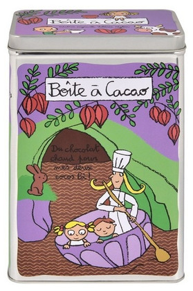 På bilden ser vi en plåtburk från den välrenommerade butiken Köpstaden.se. Denna burk, av märket Derriére la porte, är speciellt designad för förvaring av kakao. Produkten "Plåtburk Kakao" är inte bara praktisk utan även estetiskt tilltalande med sin konstnärliga design.