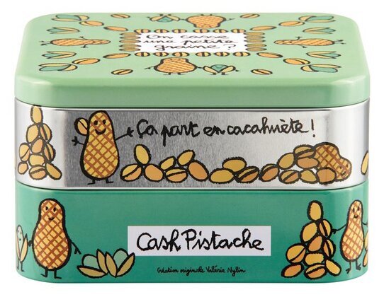 2-delad plåtburk från Derrière La Porte / Dixie med vackra gröna nyanser samt motiv av olika sorters nötter. Läs mer