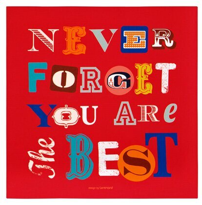 Bilden visar en livfull canvastavla från varumärket Derrière la porte, som finns tillgänglig i sortimentet hos Köpstaden.se. Tavlan har ett rött bakgrundsfält som omedelbart fångar ögat och framhäver budskapet som pryder dess yta. Texten "Never forget you are the best" är kreativt utformad med hjälp av olika typsnitt och färger. Varje bokstav erbjuder en distinkt stil, vilket ger tavlan en dynamisk och lekfull karaktär.