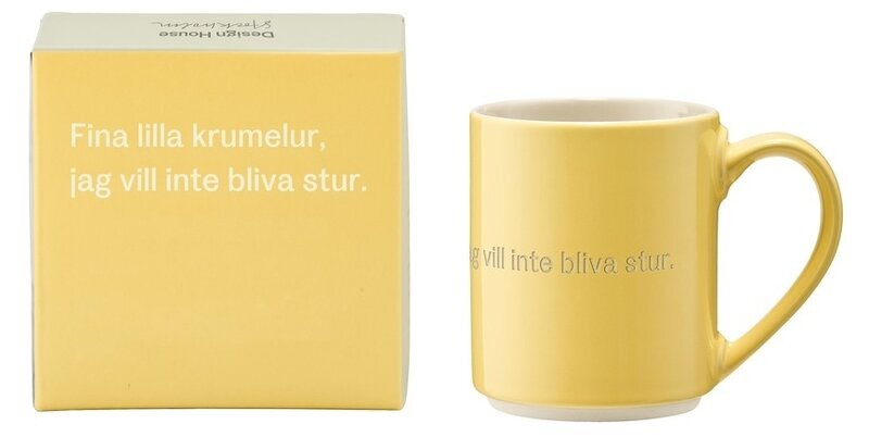 Mugg med text från Pippi Långstrump - Fina lilla krumelur, jag vill inte bliva stur. Läs mer