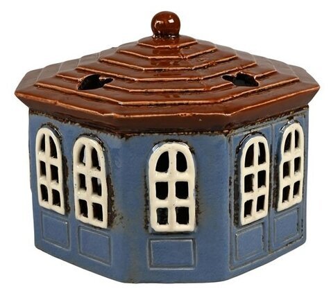 Ljuslykta keramikhus i vackra dova färger, från Det Gamle Apotek. Läs mer