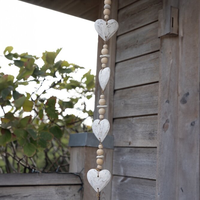 Ge ditt hem en rustik och charmig touch med denna vackra hjärtdekoration. Med handgjorda hjärtan i trä, mjuka träpärlor och en stilfull tofs, är denna hängande dekoration perfekt för att skapa en mysig atmosfär. Finns i två färger – vit och brun – som båda ger en naturlig och tidlös känsla.