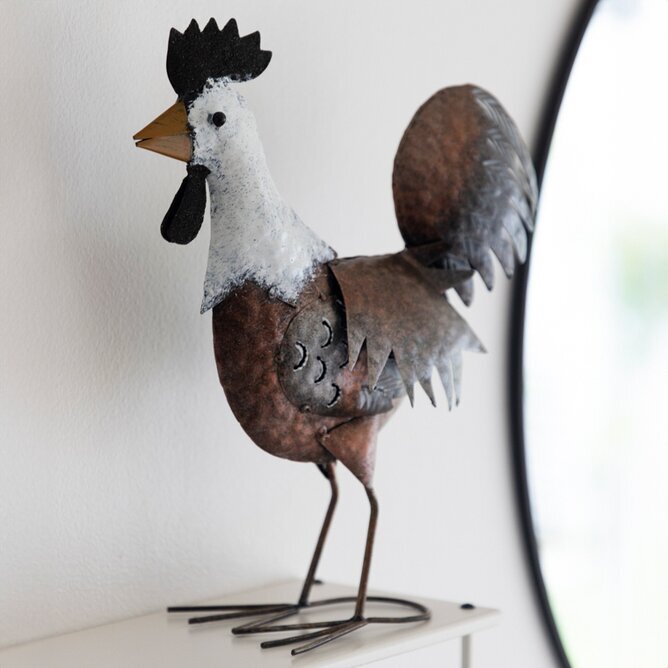 Ge ditt hem eller trädgård en lantlig känsla med dessa dekorativa tuppar i hamrad plåt. Välj mellan två varianter – Albert och Herbert – var och en med unika detaljer och en rustik charm som fångar blickarna.
