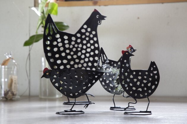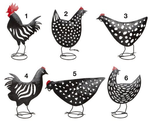 Dekorativa hönor & tuppar i olika utföranden som blir en fin detalj ute i trädgården, fina att dekorera tillsammans, från Different Design. Det kan förekomma skillnader i färg, form & utförande då produkterna är handmålade & tillverkade för hand. Säljs per styck.