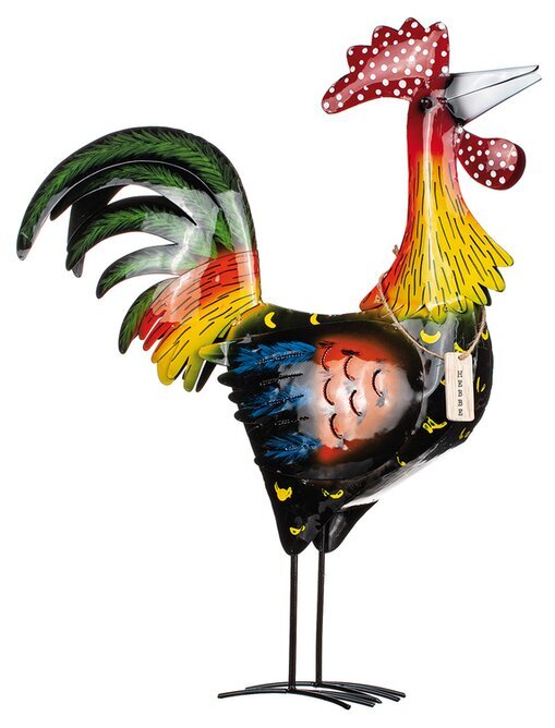 Färgglada Hebbe, 80 cm ståtlig tupp som passar fint både inne- som utomhus & speciellt till påsk. Tillverkad i hamrad plåt & handmålad så det kan förekomma färg samt nyansskillnader i utförande. Tuppen Hebbe finns i flera olika storlekar fina att ställa i grupp tillsammans.