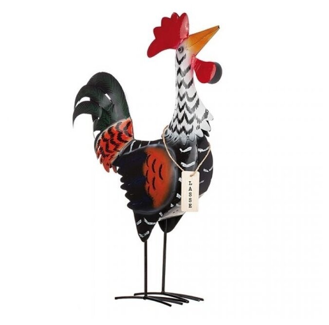 Färgglada Lasse, 58 cm ståtlig tupp som passar fint både inne- som utomhus & speciellt till påsk. Tillverkad i plåt & handmålad så det kan förekomma färg samt nyansskillnader i utförande. Levereras i 2 delar.