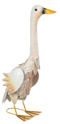 En ståtlig anka i metall som blir en dekorativ blickfångare i trädgården, på uteplatsen eller vid entrén. Med sin höga siluett, detaljrika fjädermönster och varma färgtoner skapar den en charmig och personlig känsla i utemiljön.