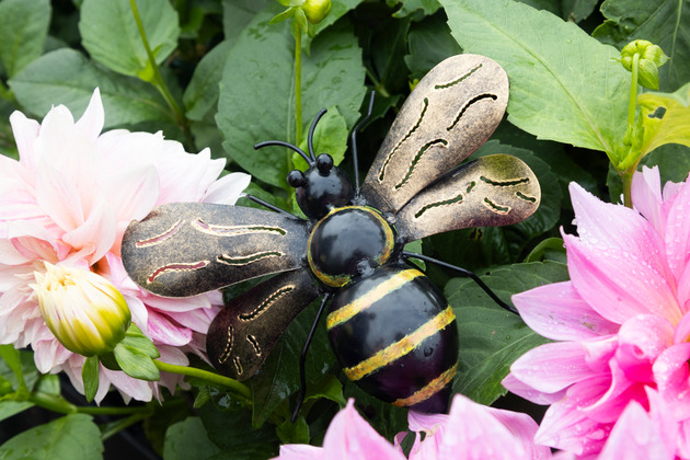 Ett dekorativ bi i metall som blir ett charmigt inslag i trädgården, på balkongen eller vid entrén. Med sina vackert formade vingar och klassiska svartgula ränder passar den perfekt bland blommor och grönska – och ger en extra sommarkänsla var du än placerar den.