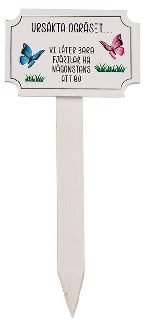 Dekorativ trädgårdsskylt med text - Ursäkta ogräset... Från Different design. Läs mer