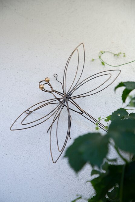 Trollslända i smide, fin att fästa på både altanen eller på hus & garagefasad. Finns i två olika varianter.