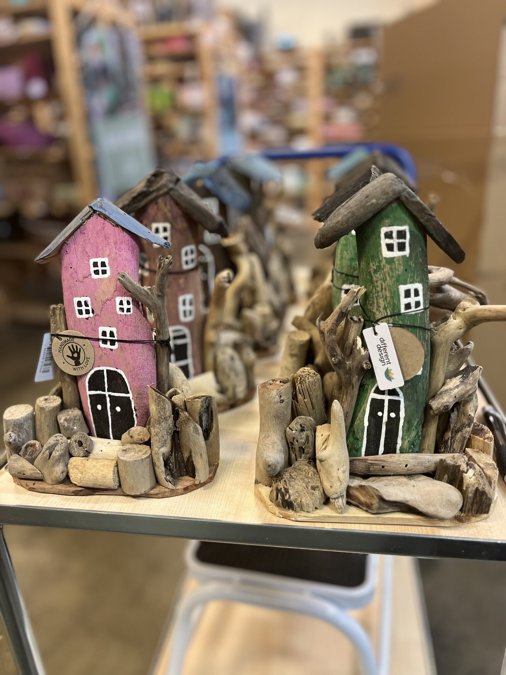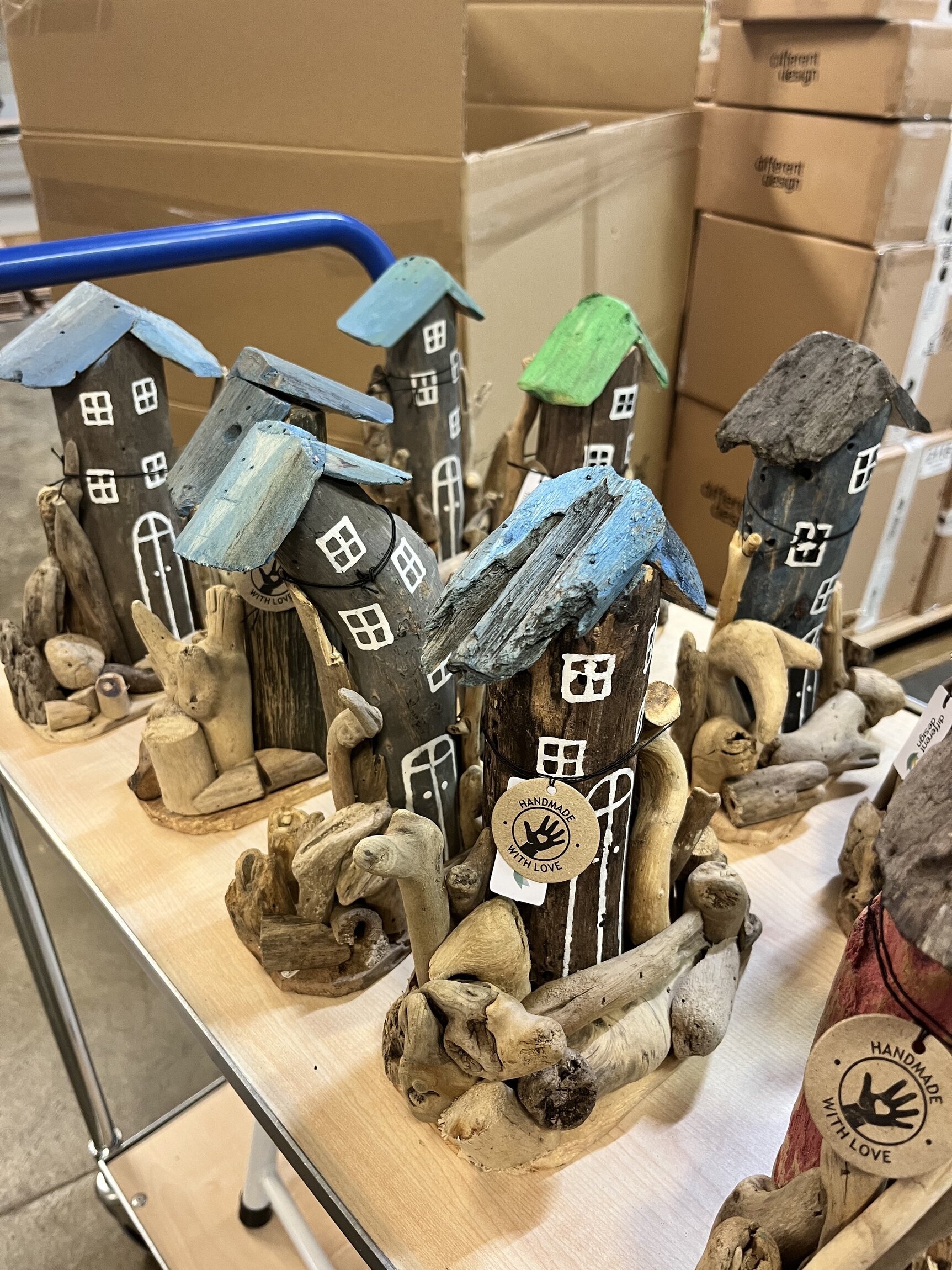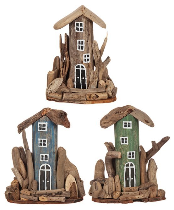 Dekorativt hus tillverkat av drivved. Alla hus är unika i sitt utförande & det kan skilja i färg, form & utseende.