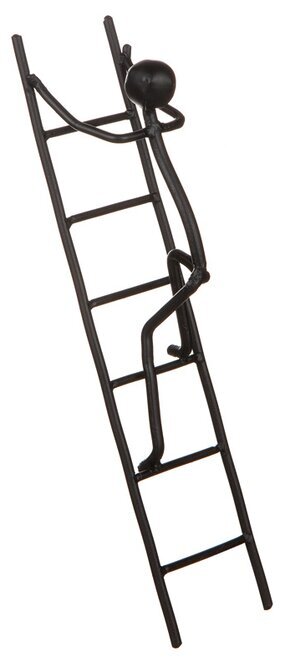 På bilden ser vi en unik dekoration från Köpstaden.se, en butik känd för sitt breda utbud av produkter som täcker många av vardagens behov. Objektet är en skulptur tillverkad i smide, vilket ger den en robust och hållbar framtoning. Den föreställer en människoliknande figur som klättrar uppför en stege. Denna kreativa skulptur är skapad av Different Design, ett varumärke som ofta kännetecknas av sina originella och fantasifulla produkter.