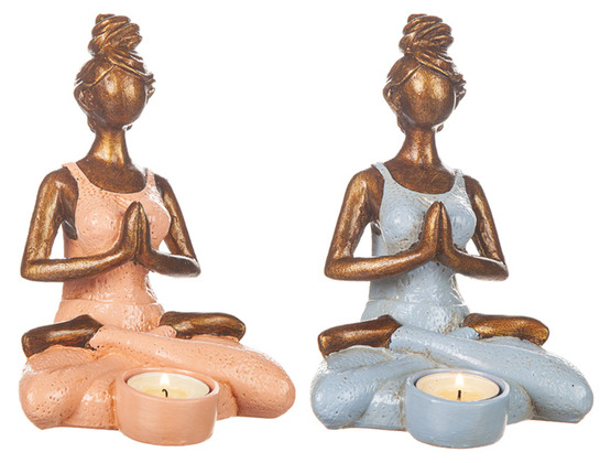 Sprid ro och balans med denna vackra ljushållare formad som en sittande yogakvinna. Figuren håller ett värmeljus framför sig och sprider ett mjukt, avslappnande sken – perfekt för meditation, kvällsro eller som en fin inredningsdetalj.