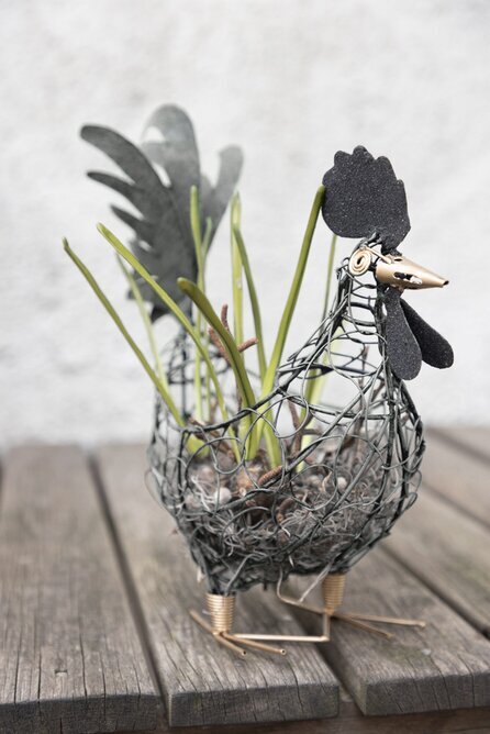 Dekorativ korg i smide, kan användas till både blomdekorationer eller som äggkorg. Från Different Design.