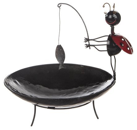 Fågelbad på fötter med en dekorativ nyckelpiga som sitter på kanten & fiskar. Från Different Design.