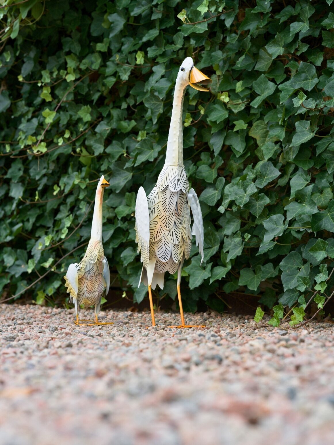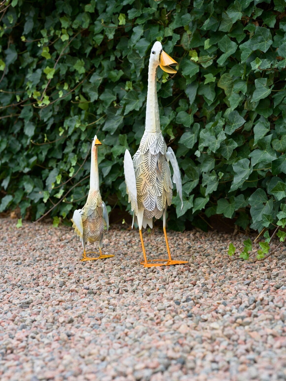En ståtlig anka i metall som blir en dekorativ blickfångare i trädgården, på uteplatsen eller vid entrén. Med sin höga siluett, detaljrika fjädermönster och varma färgtoner skapar den en charmig och personlig känsla i utemiljön.