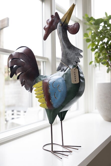 En färgstark tupp i metall som blir ett härligt blickfång i trädgården, på altanen eller vid entrén. Med sin imponerande stjärt, livfulla färger och dekorativa detaljer skapar den en lekfull och lantlig känsla i utemiljön.