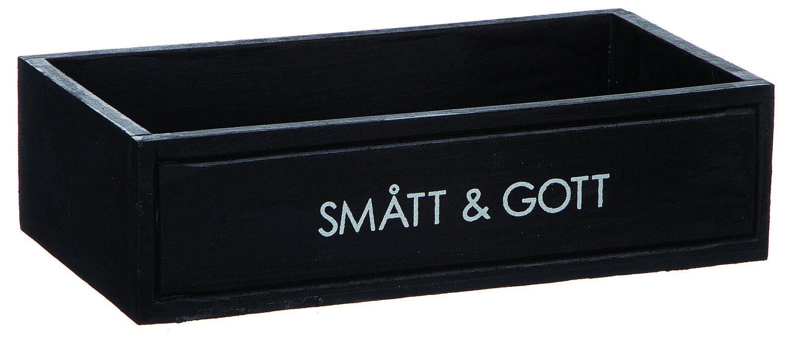 Svart förvaringslåda med text - Smått & Gott. En bra att ha låda som passar bra till förvaring av små ting. Läs mer