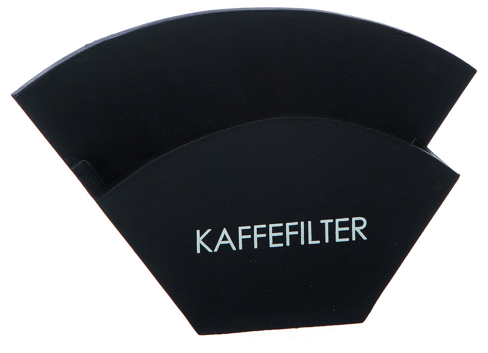Förvaring till kaffefilter, tillverkad i svart trä med spännen baktill för upphängning på vägg.