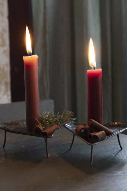 Dekorativt ljusfat i hamrad plåt med pigg till stearinljus, från Different Design. Läs mer