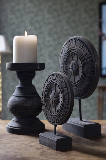 Vacker svarvad träljusstake, finns i två olika färgnyanser. Från Different Design. Läs mer