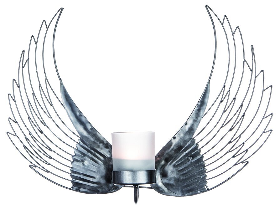 Denna design gör sig väl både som en dekorativ detalj och som en funktionell ljushållare. Tack vare vingarnas utsträckta vidd ger den ett intryck av rymd och öppenhet, vilket gör den till en intressant mittpunkt i vilket rum den än placeras. Ljushållarens dimensioner och proportioner är välbalanserade, och den har ett gediget infästningssystem som säkerställer att den hänger stabilt på väggen.