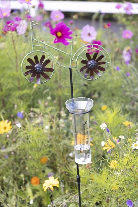 Regnmätare föreställandes en cykel, en dekorativ detalj i trädgården. Från Different design. Läs mer