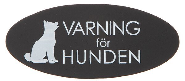 Svart plåtskylt med vit text - Varning för hunden, från Different Design. Läs mer