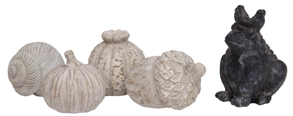 Dekorativa växter & djur i olika utföranden, kan användas som dekoration i trädgården eller fästas på armeringsnät då de har hål i botten. Finns i 5 olika varianter.