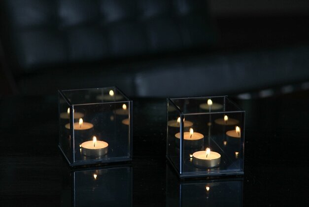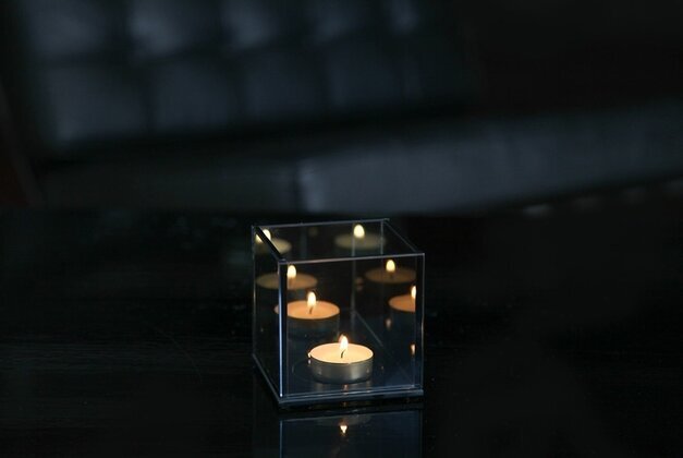 I denna ljuslykta som har plats för ett värmeljus kan man se oändligt många fler ljus då glaset reflekterar ljuset. Läs mer