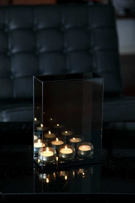 I denna ljuslykta som har plats för tre värmeljus kan man se oändligt många fler ljus då glaset reflekterar ljuset. Läs mer