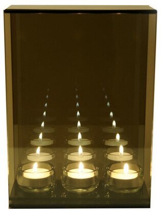 I denna ljuslykta som har plats för tre värmeljus kan man se oändligt många fler ljus då glaset reflekterar ljuset. Värmeljusen sätts på bottenplattan och själva glaset går att lyfta så man enkelt kan tända ljuset. Denna ljusstake är av dansk design & har designats för att hedra offren i tsunamin.