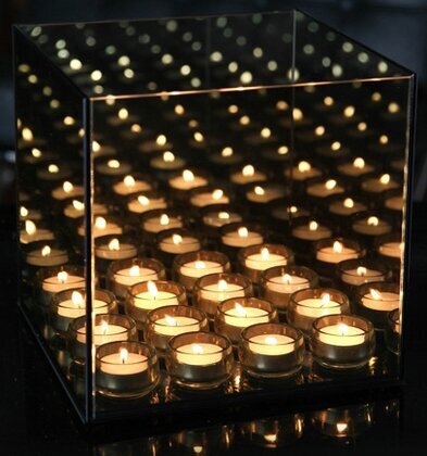 Kubens design är både modern och tidlös med en glasstruktur som omsluter de många små värmeljusen. Glasytan reflekterar ljuset på ett sätt som skapar en illusion av oändligt många ljuskällor inom kuben, vilket ger en djup och hypnotisk effekt. Ljuset sprider sig i mjuka skikt genom glaset, och varje flamma syns tydligt men på ett dämpat sätt, vilket ger ett milt och behagligt sken som skapar en stämningsfull atmosfär.